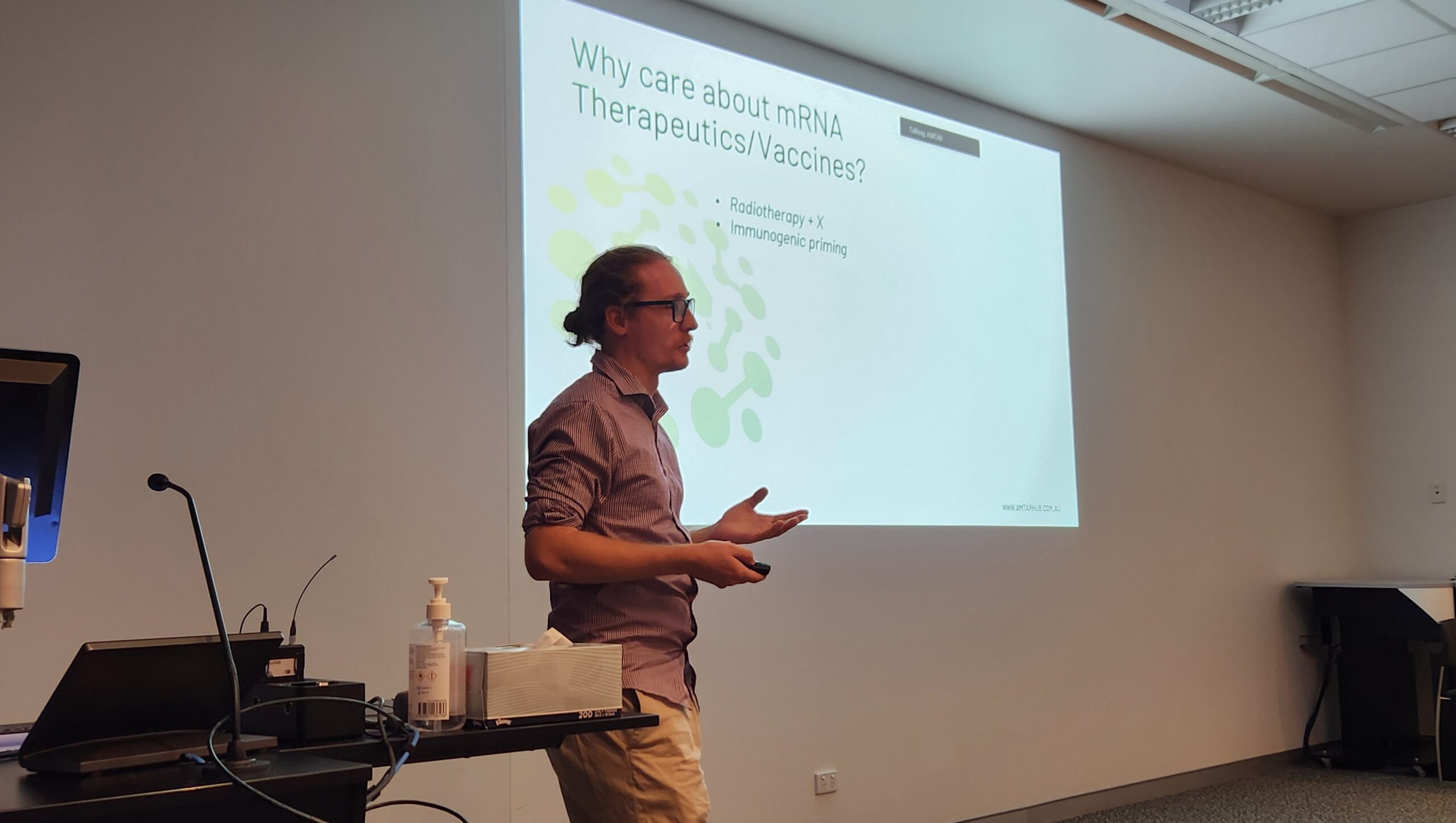 A keynote address from Professor Jason Lewis (MSKCC) set the tone for the day, followed by research presentations spanning chelator design, radiochemistry innovations, and radiobiology. Dr Ellen van Dam (Clarity Pharmaceuticals) and Ben Hughes (Therapeutic Innovation Australia) joined Jason for a lively expert panel discussion moderated by AMTAR postdoc Dr James Wood, exploring challenges and opportunities in translating radiochemical concepts into clinical impact.
